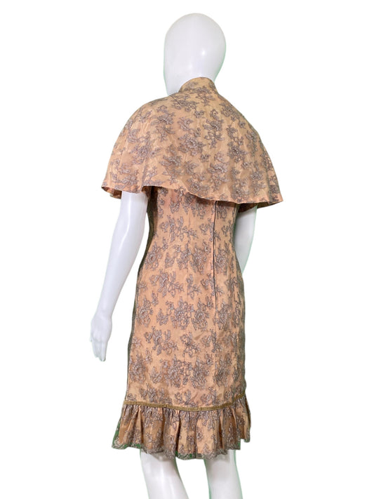 Feminine Pink and Mauve Lace Dress with Caplet